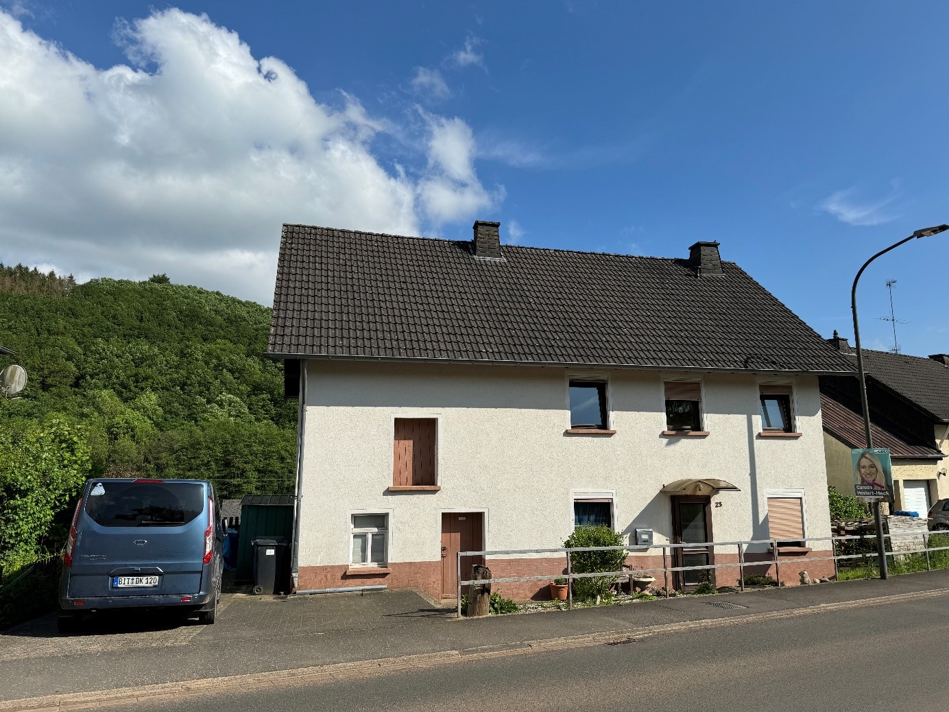 Dieses einseitig angebaute Einfamilienhaus mit Garage befindet sich in Ortsrandlage.