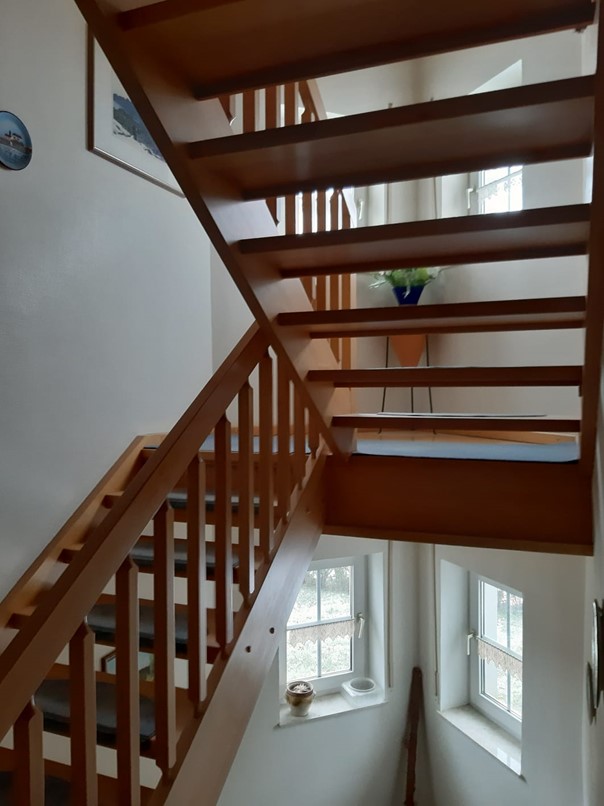Über das Treppenhaus gelangt in den Keller. Hier war immer ein Büro